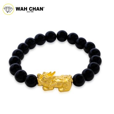 WAH CHAN 999 Gold Pendant – Dragon Pixiu Black Onyx Crystal Bracelet B35