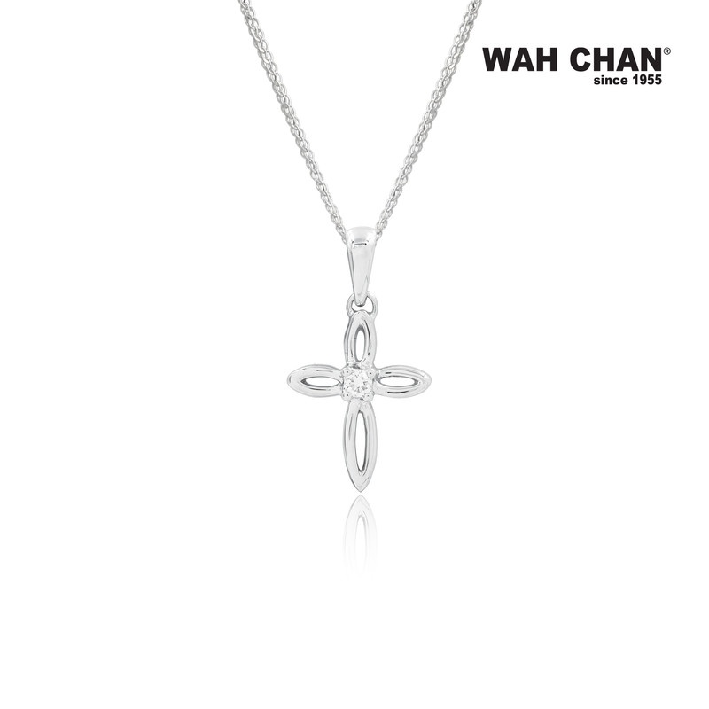Crafted in polished 18k white gold, this cross-shaped diamond pendant from Wah Chan offers a graceful symbol of faith, light and enduring hope. The centre diamond adds a touch of brilliance, while the elongated openwork silhouette lends softness and balance to the design. Elegant yet meaningful, it is a timeless piece for personal reflection or heartfelt gifting. Designed with the care and craftsmanship that define Wah Chan’s legacy, this pendant is a quiet statement of belief, beauty and cherished memories.