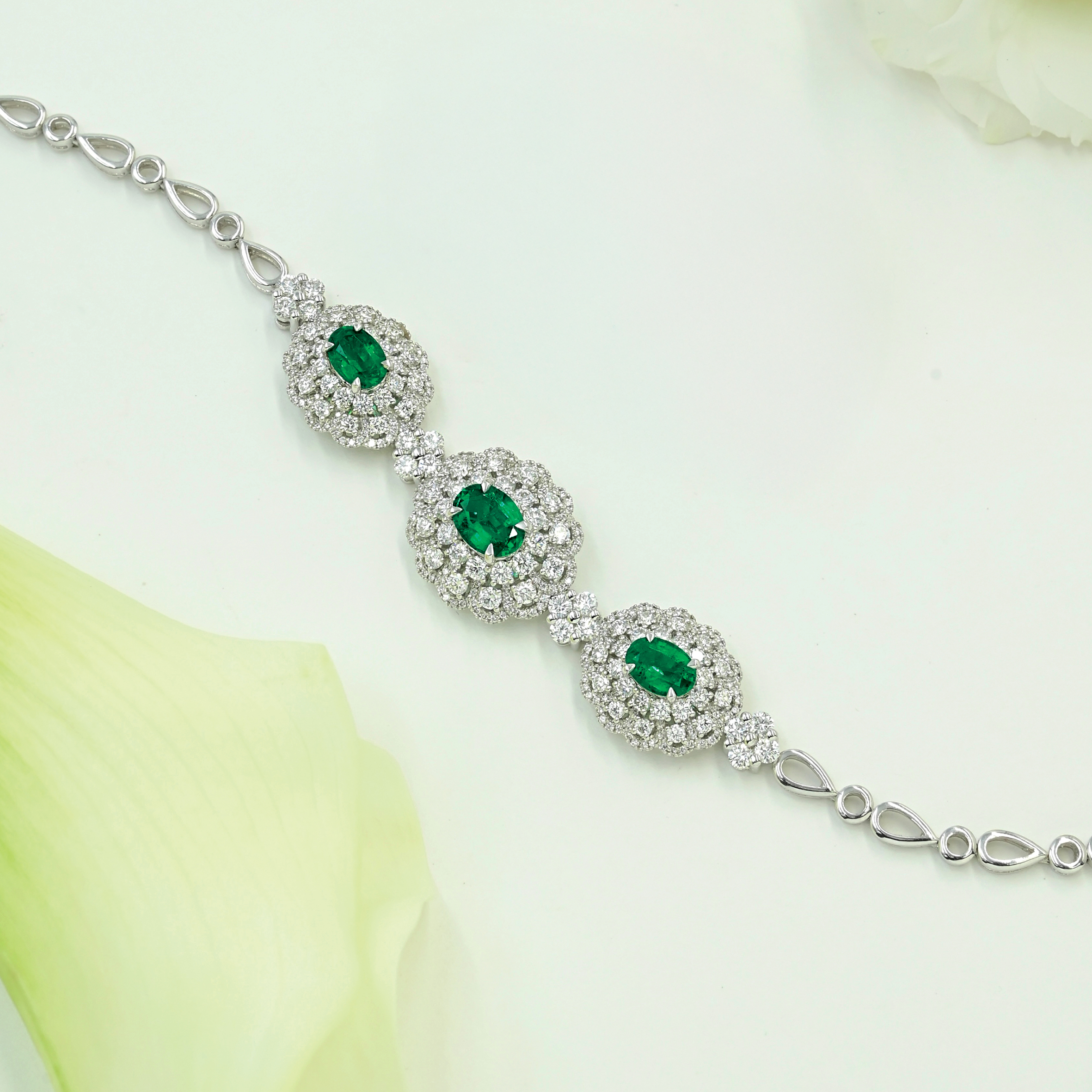 HomeCollectionHigh Jewellery18K White Gold Emerald Diamond Bracelet