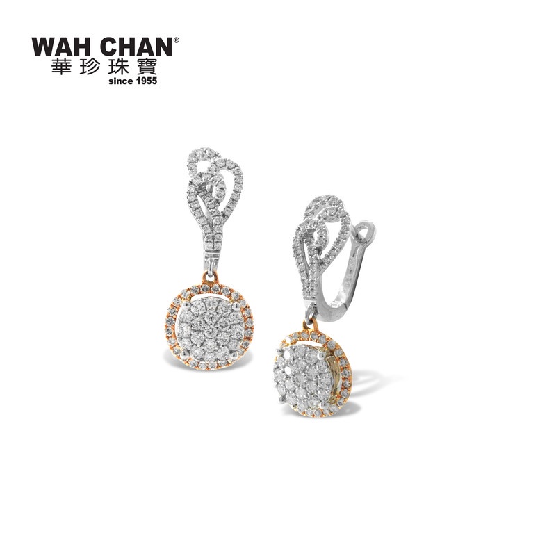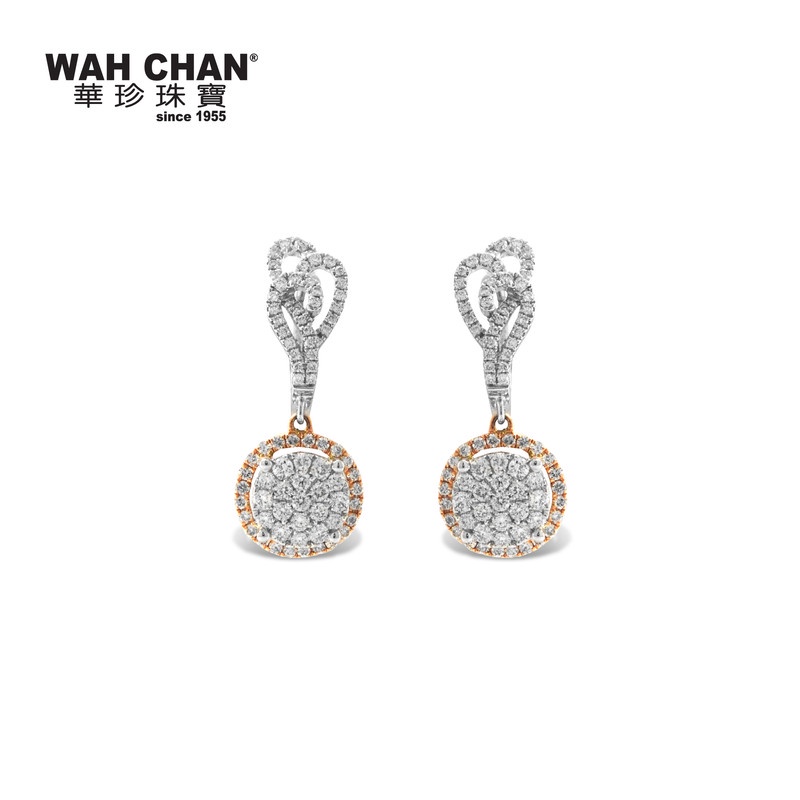 18K White Gold & Rose Gold Dangling Diamond Earrings (ED03427-B01)