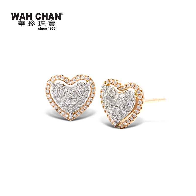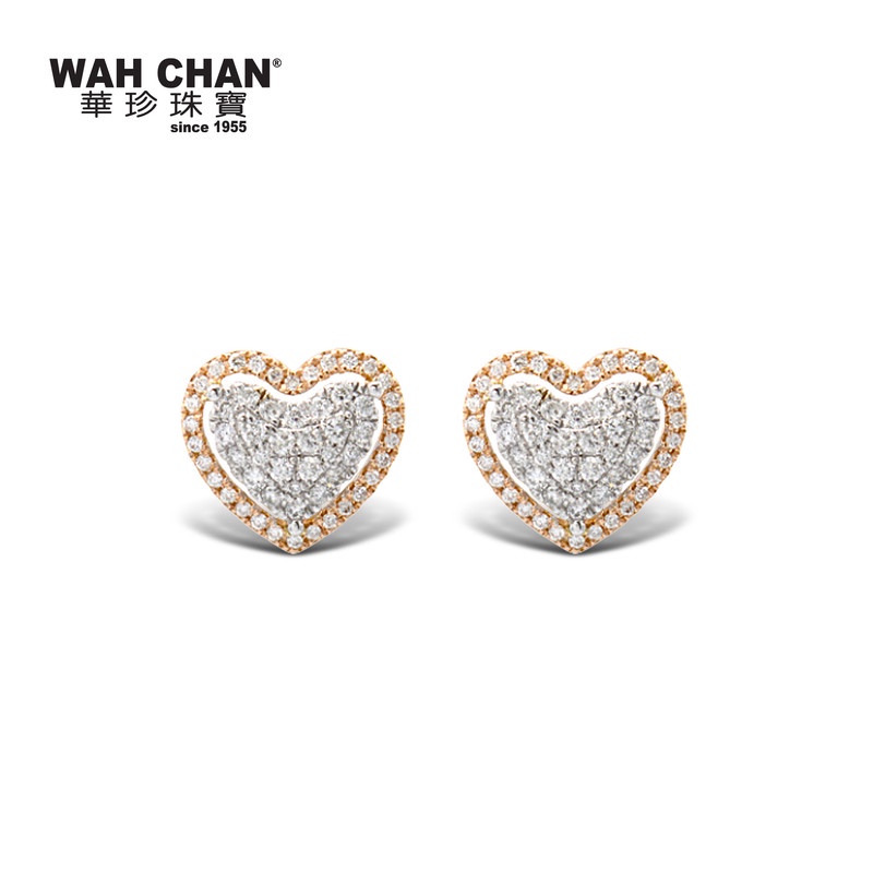 18K White Gold & Rose Gold Heart Shape Diamond Earrings (ED03654-A02)