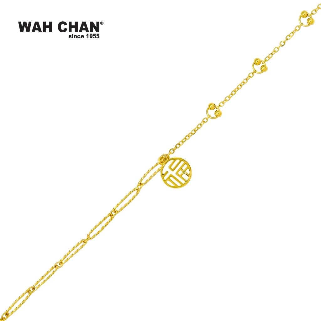 Elegant in its simplicity, this 916 gold bracelet from Wah Chan features a refined chain accented with a circular “Fu” charm, symbolising abundance and happiness. Its thoughtful arrangement and graceful detailing reflect harmony and sincerity, making it an ideal choice for gifting or commemorating joyful occasions. Rooted in generations of Malaysian craftsmanship, this timeless piece blends cultural richness with delicate styling. A meaningful adornment, it serves as a beautiful reminder of good wishes, cherished bonds and the beauty of everyday blessings.