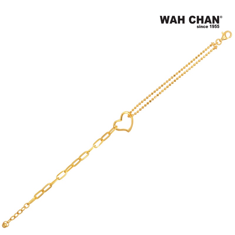 Crafted in luminous 916 gold, this heart-inspired bracelet by Wah Chan blends simplicity with romance in a design that celebrates love in its purest form. Featuring a delicately open heart at its centre and an elegant double-chain detail, the piece reflects the beauty of genuine connection. Perfect for anniversaries, proposals or meaningful everyday wear, it captures the heartfelt emotions of giving and receiving. A graceful addition to any jewellery collection, made to be treasured across generations.