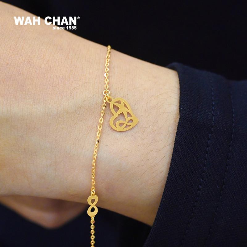 Crafted in radiant 916 (22K) gold, this Wah Chan bracelet features an openwork heart charm beautifully entwined with flowing lines that evoke love, connection, and personal meaning. The polished finish and gentle curves create a refined silhouette that sits gracefully on the wrist. Designed by skilled artisans, this piece reflects the brand’s commitment to emotional storytelling through fine craftsmanship. A symbol of affection and treasured bonds, it is perfect for marking life’s most meaningful moments with quiet elegance.