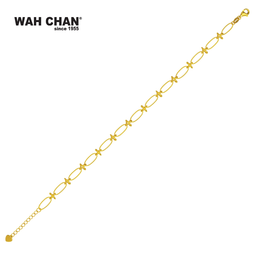 Designed with poetic symmetry, this 916 (22K) gold bracelet from Wah Chan features alternating starburst and oval links that create a harmonious rhythm along the wrist. The detailed finishing and radiant glow bring out a sense of grace and celebration, ideal for honouring meaningful milestones. Each element is thoughtfully crafted to reflect Wah Chan’s enduring heritage of artistry and connection. A lasting symbol of elegance and cherished memories, this bracelet beautifully captures the joy of shared moments and refined personal style.