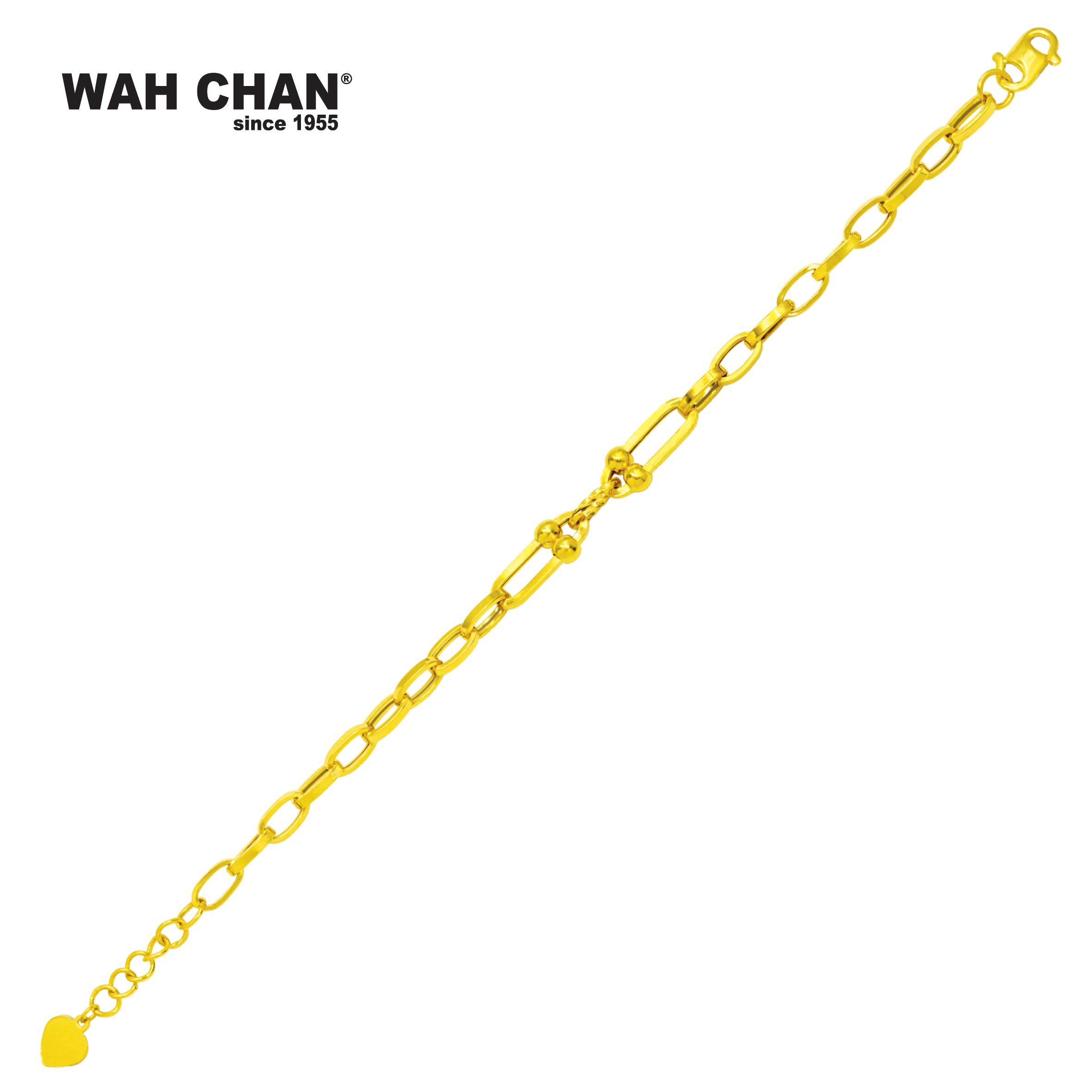 Timeless and bold, this 916 (22K) gold bracelet from Wah Chan features a refined sequence of alternating oval and rectangular links joined by an elegant trio-bead centrepiece. The polished silhouette and graceful proportions make it a standout accessory that speaks of confidence, refinement, and enduring style. Designed with the care and precision Wah Chan is known for, this piece is ideal for celebrating cherished bonds and life’s significant milestones. A meaningful expression of strength and heartfelt tradition, made to be remembered.