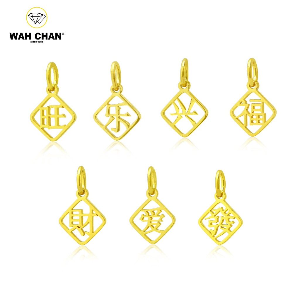 Celebrate meaningful wishes with this 916 (22K) gold pendant, featuring elegant Mandarin characters crafted in a clean openwork design. Each pendant symbolises a heartfelt blessing such as prosperity, happiness, love, or success, making it a thoughtful piece for gifting or personal wear. Framed in a simple diamond shaped outline, the design blends traditional values with modern minimalism. Wah Chan’s meticulous craftsmanship brings cultural significance to life in a pendant that feels timeless and meaningful.