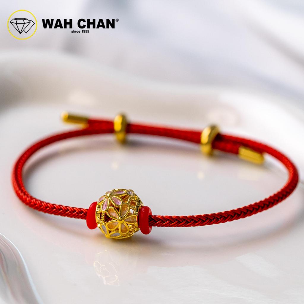 A delicate bloom of gold on a passionate red cord — a timeless reminder of love worn close to the heart. Completed with polished gold-tone end caps and adjustable sliding beads, this bracelet offers a perfect fit and a luxurious finish.