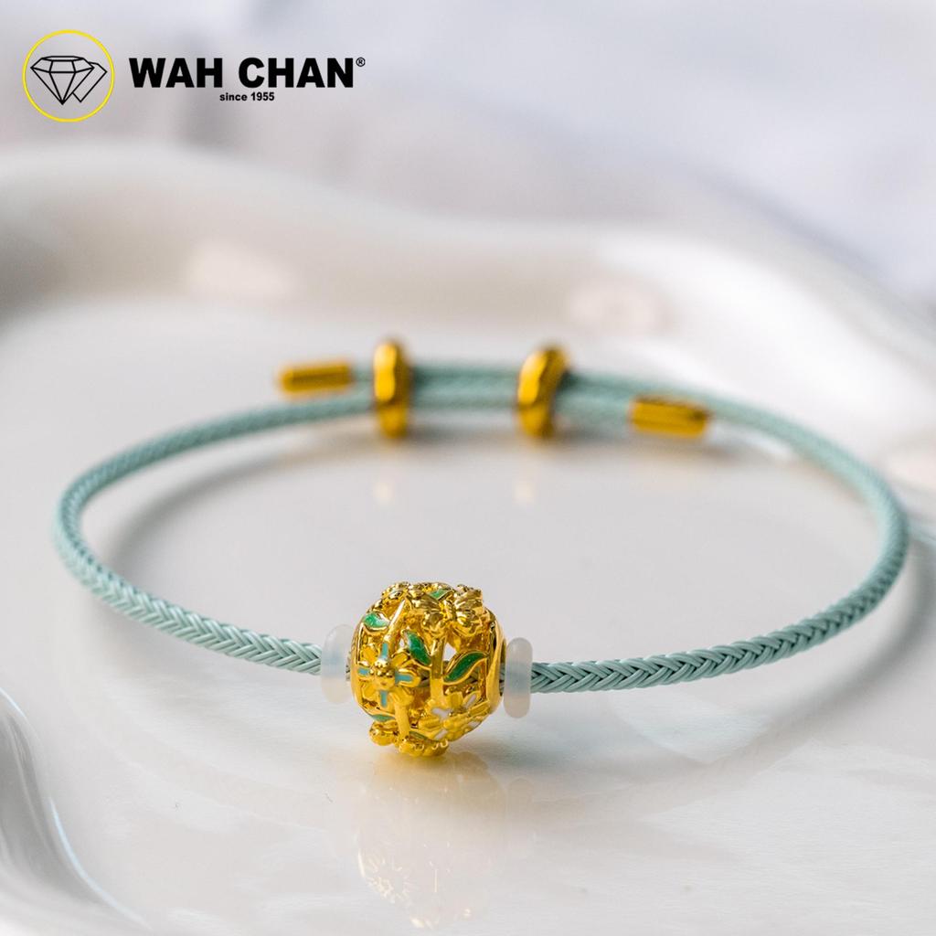Designed with a soft, refreshing mint green braided cord, this piece brings a sense of calm elegance to your everyday style. At its center rests a beautifully crafted gold charm, delicately adorned with floral motifs and subtle green enamel accents that evoke the gentle charm of a blooming garden.