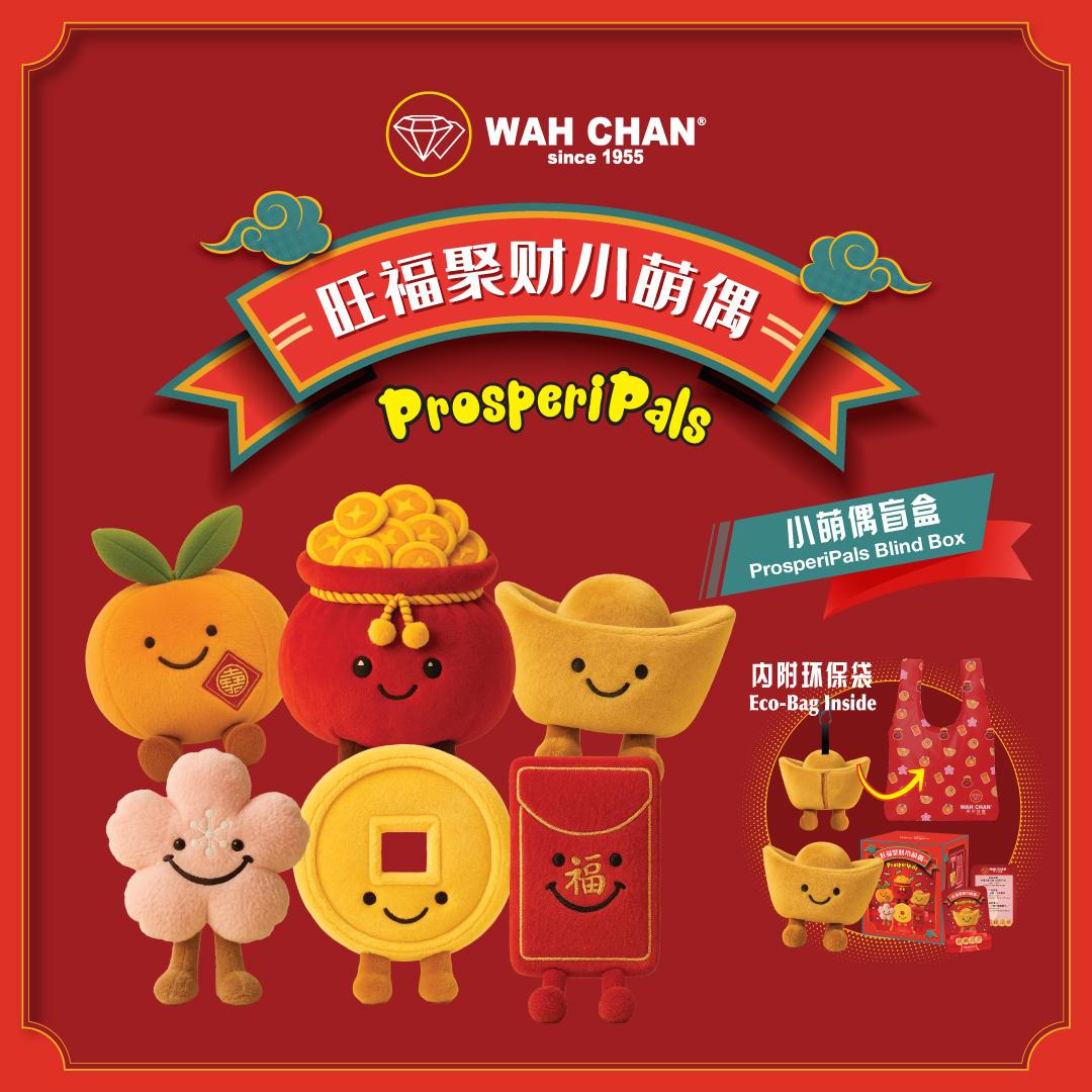 ProsperiPals 999 Gold Charm x Plushie Shopping Bag Blind box 1 set – bring home a touch of cuteness and good fortune.