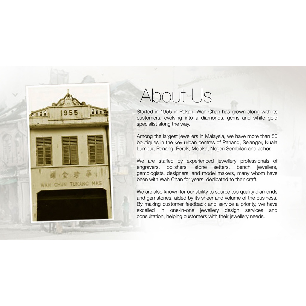 Started in 1955 in Pekan, Wah Chan has grown along with its customers, evolving into a diamonds, gems and white gold specialist along the way.