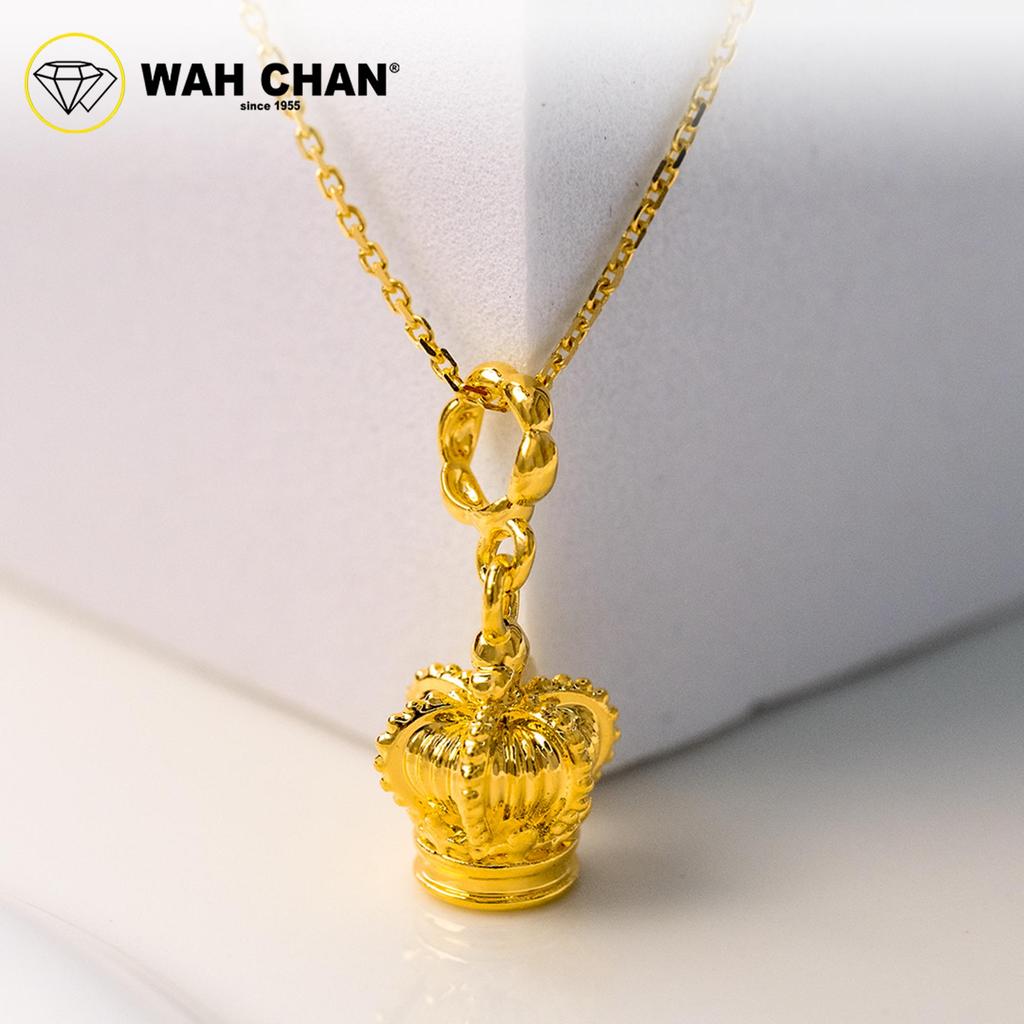 A striking gold necklace featuring a beautifully sculpted crown pendant, symbolizing strength, confidence, and elegance. Its polished finish and intricate detailing make it a timeless statement piece for any occasion.