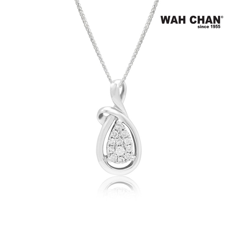 Elegantly shaped in 9k white gold, this diamond pendant from Wah Chan features a soft teardrop silhouette that embraces a cluster of shimmering stones. Its gentle curves and polished finish create a refined look that speaks of tenderness and grace. A beautiful reflection of Wah Chan’s heritage in fine jewellery, this piece captures the essence of heartfelt giving. Whether marking an anniversary, wedding or personal moment, it offers timeless meaning and emotional depth that will be cherished for years to come.
