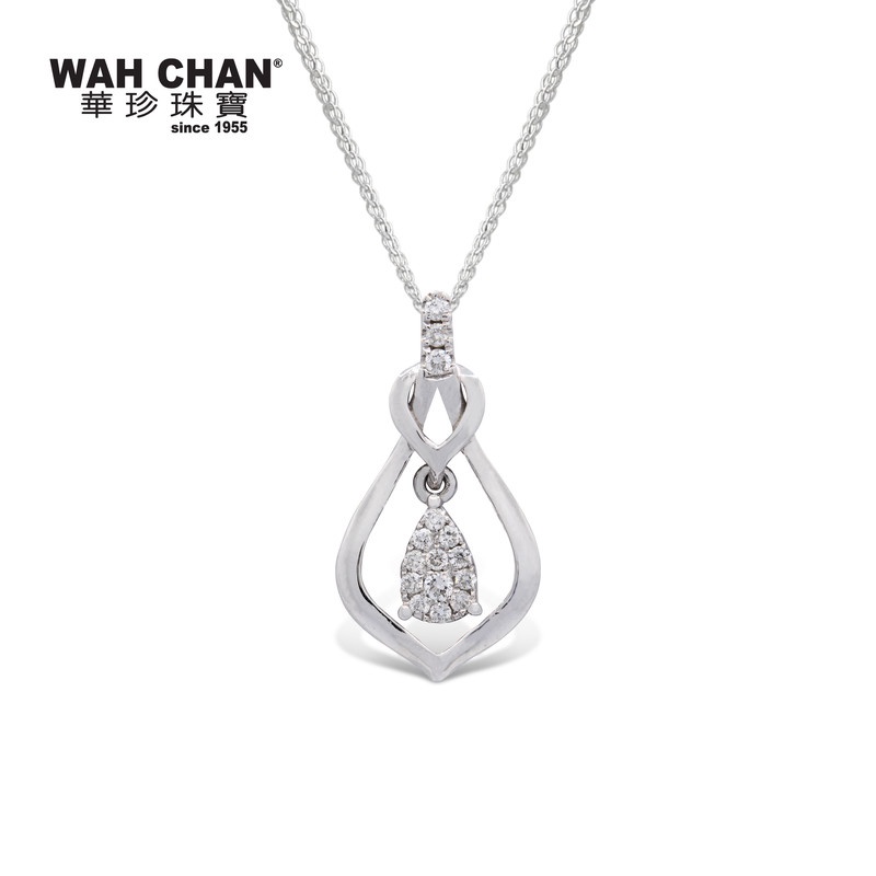 Crafted in gleaming 9k white gold, this Wah Chan diamond pendant showcases a graceful double-loop design that frames a teardrop cluster with gentle elegance. The open form creates a sense of lightness and flow, reflecting harmony and refined emotion. Carefully finished by skilled artisans, it celebrates the brand’s tradition of meaningful design and timeless charm. Perfect for weddings, anniversaries or treasured gifts, this radiant piece captures the beauty of enduring love and the quiet strength found in heartfelt connections.